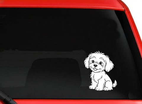 Cute Dog Car Window Decal, 6 Inches, White Vinyl, Die Cut Sticker