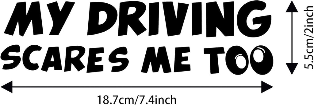 Funny Car Decal Sticker, My Driving Scares Me Too, 7.4 x 2 inch, 2-Pack, Waterproof Vinyl