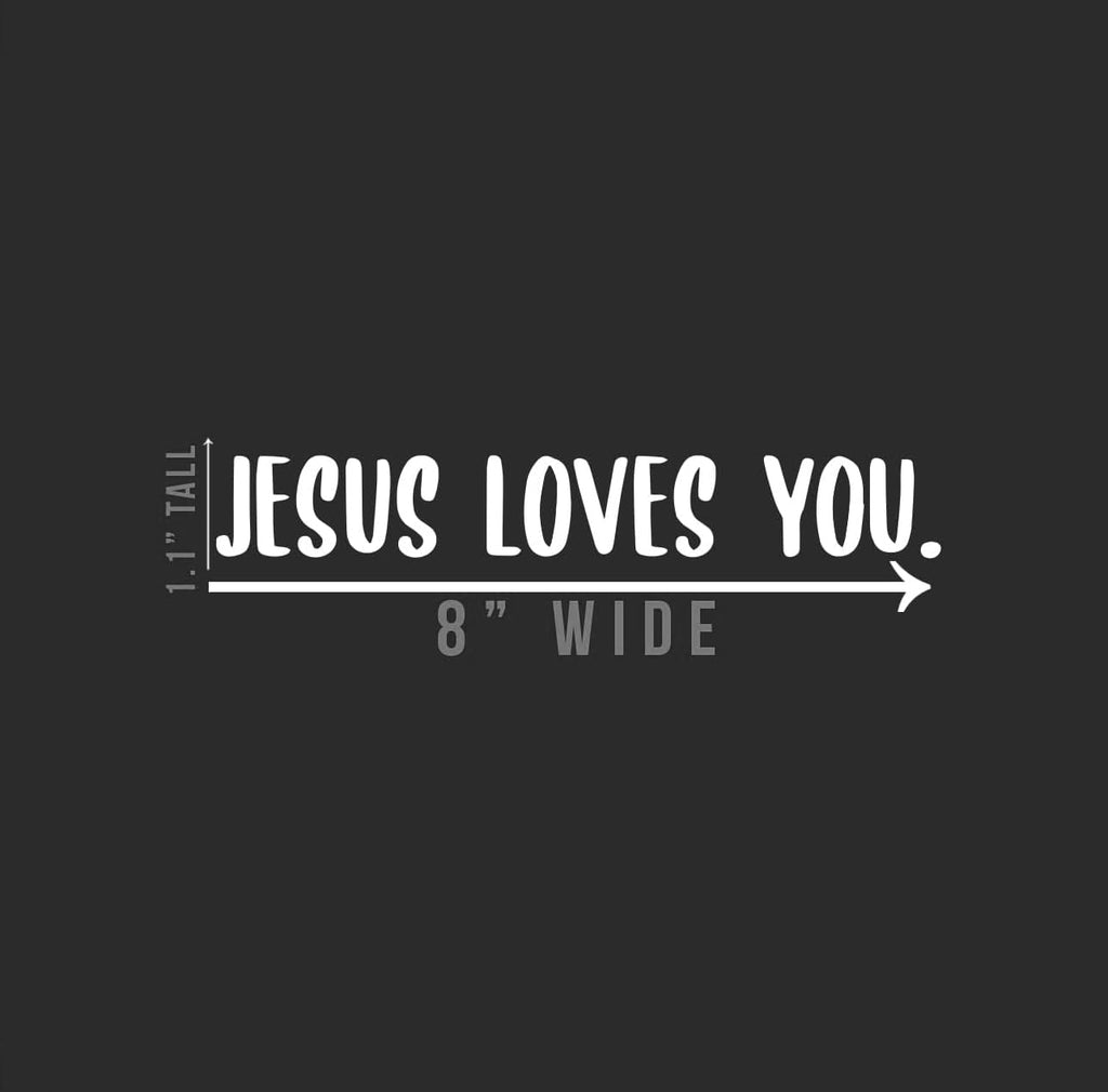 Jesus Loves You Car Window Decal, White Vinyl Sticker, 8 x 1 inches