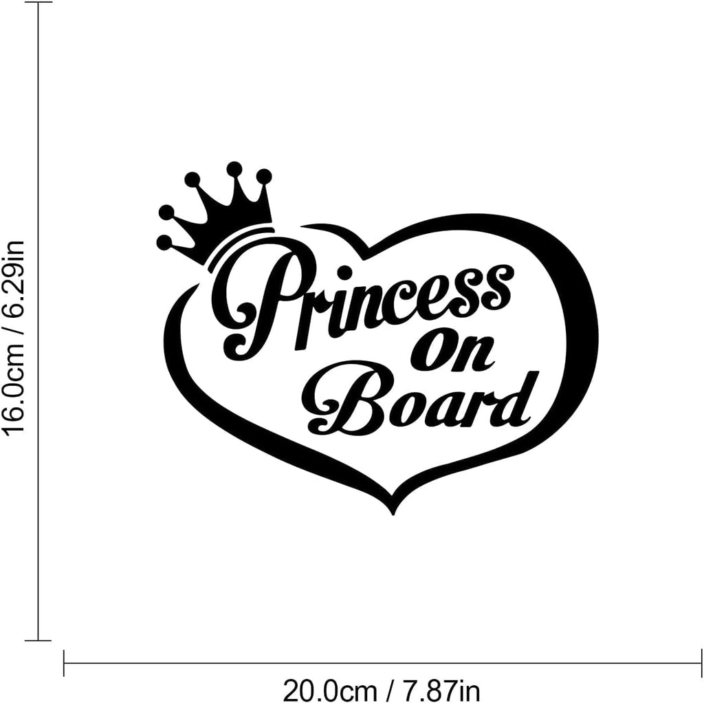 Princess on Board Car Decal, 7.87 x 6.29 inches, 2-Pack White Vinyl Safety Warning Stickers for Vehicle Windows