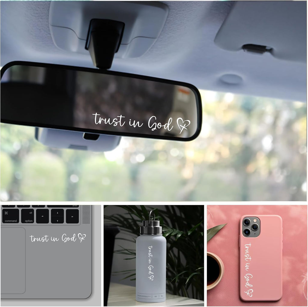 VERSATILE DESIGN: White 'Trust in God' decal with heart design, perfect for car rearview mirrors, laptops, water bottles, and phone cases EASY APPLICATION: Simple peel-and-stick installation process for quick and secure placement on any smooth...